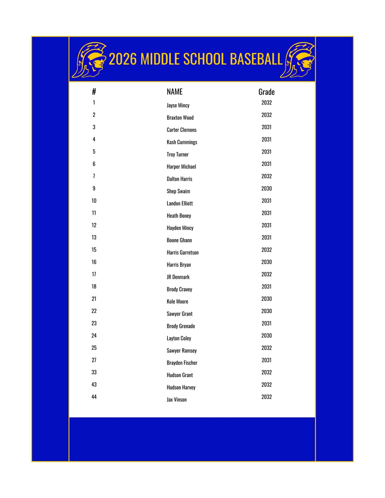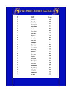 MS BASEBALL ROSTER
